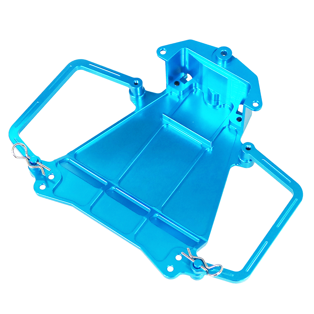 本製品は、60-61硬質アルミを使用したCW-01シャーシ専用の高強度バッテリーホルダーです。動力用バッテリーを確実に固定すると同時に、シャーシ底面を保護するアンダーガード機能を兼ね備えています。
