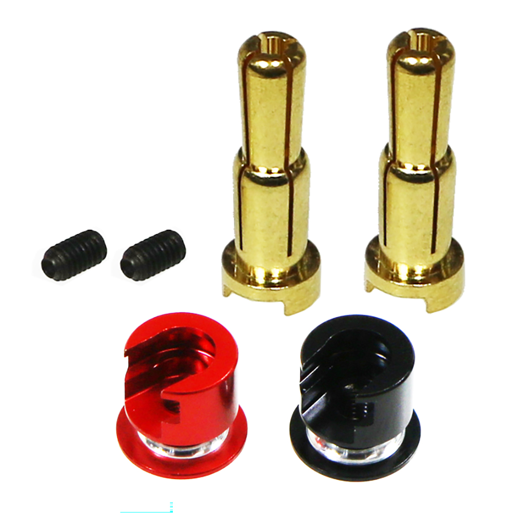 4mm/5mm対応・2段タイプ オス型ヨーロピアンコネクタ(ローハイト・ステップヒートシンクキャップ付き) 異なる2サイズ(4mm・5mm)のコネクタに対応可能な2段構造で、1つで幅広い用途に対応できる便利な設計です。軽量化された赤と黒のステップヒートシンクキャップは、極性の視認性を高め、脱着もスムーズ。さらに、端子およびコード部の発熱を効果的に抑制します。