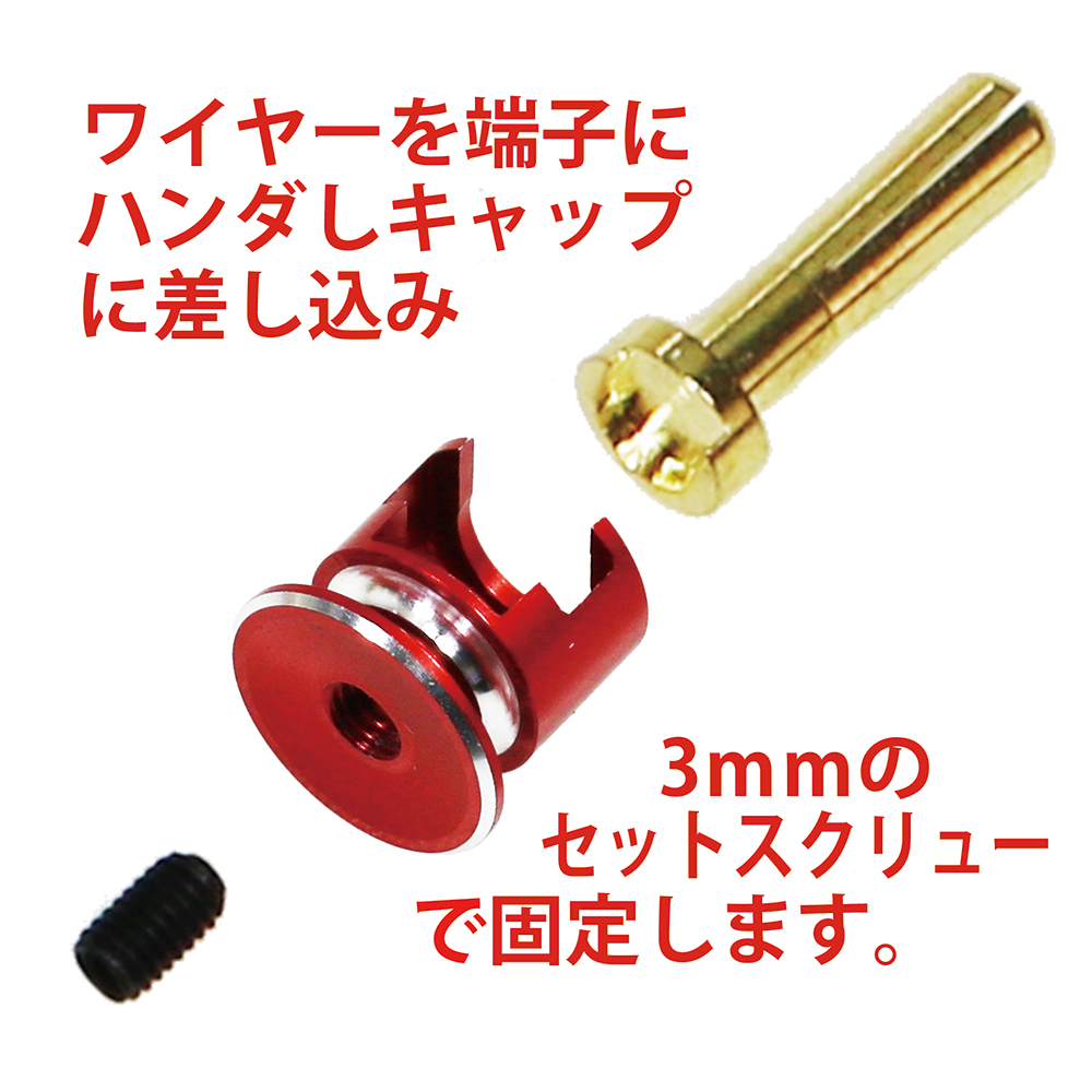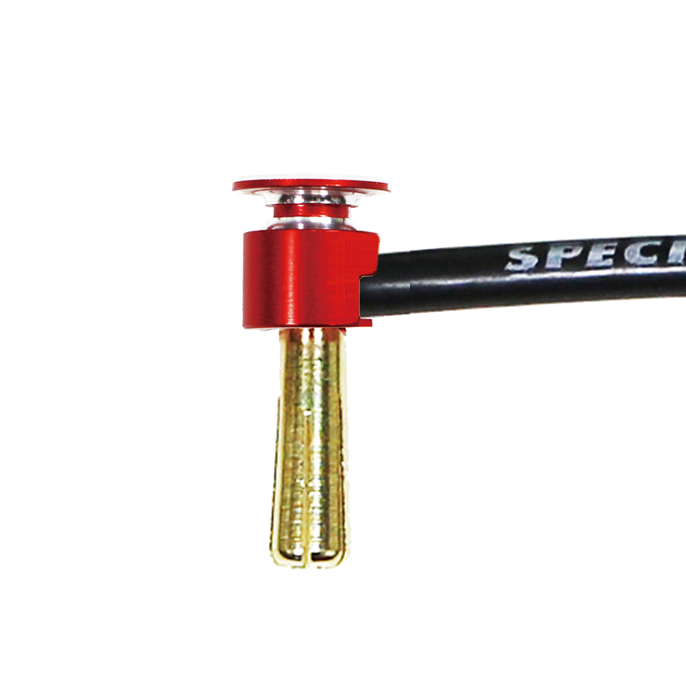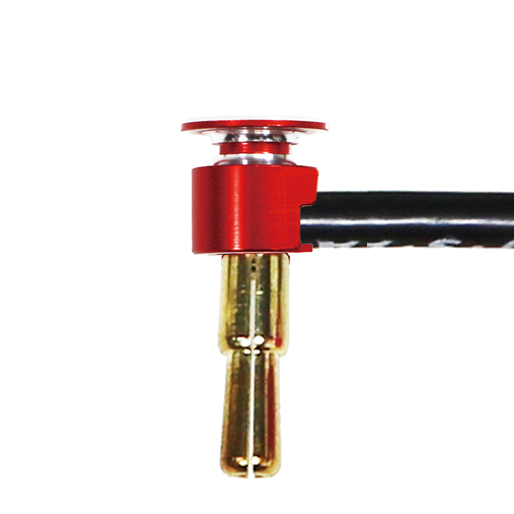 4mmタイプ・オス型ヨーロピアンコネクタ(ローハイト・ステップヒートシンクキャップ付き) このクラス最高レベルの通電効率を実現。軽量化された赤と黒のステップヒートシンクキャップにより、極性の識別がしやすく、スムーズな脱着が可能です。また、端子およびコード部の発熱を効果的に抑制します。