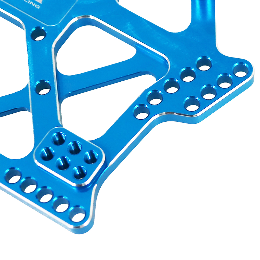 左右それぞれに6箇所のショック固定穴を備え、取り付け位置を調整することでシャーシ特性に多彩な変化を加えることが可能です。