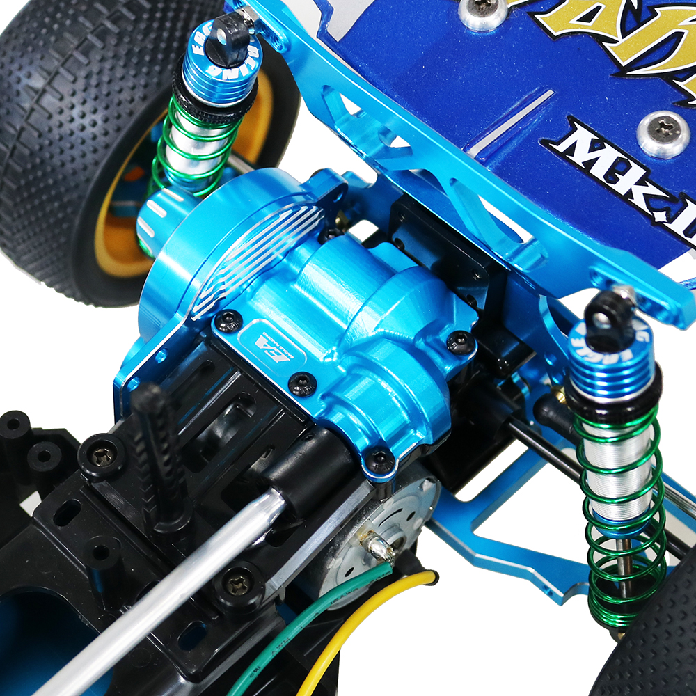 シャーシにしっかりと固定する事で、シャーシ剛性を向上させ、モーターからの動力を確実にタイヤに伝えます。
